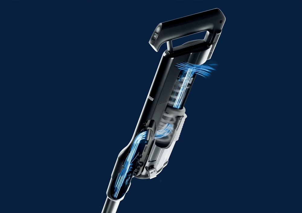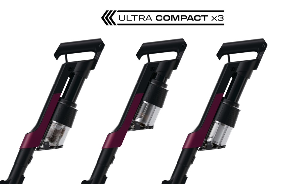 Grâce à la technologie brevetée Ultra Compact X3, l’aspirateur HF2 compacte la poussière afin de prolonger la puissance d’aspiration*. * Testé en interne selon la norme IEC 62885-2:2021 cl.5.12, avant et après compactage.