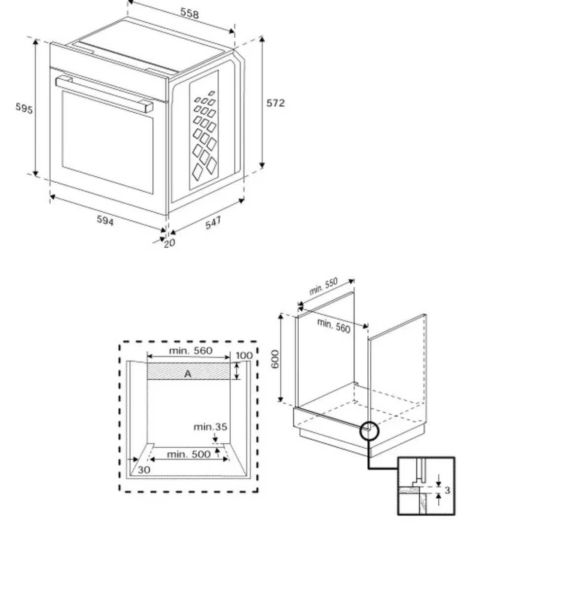 | Taille requise de la niche d'encastrement | 560×550×600 |