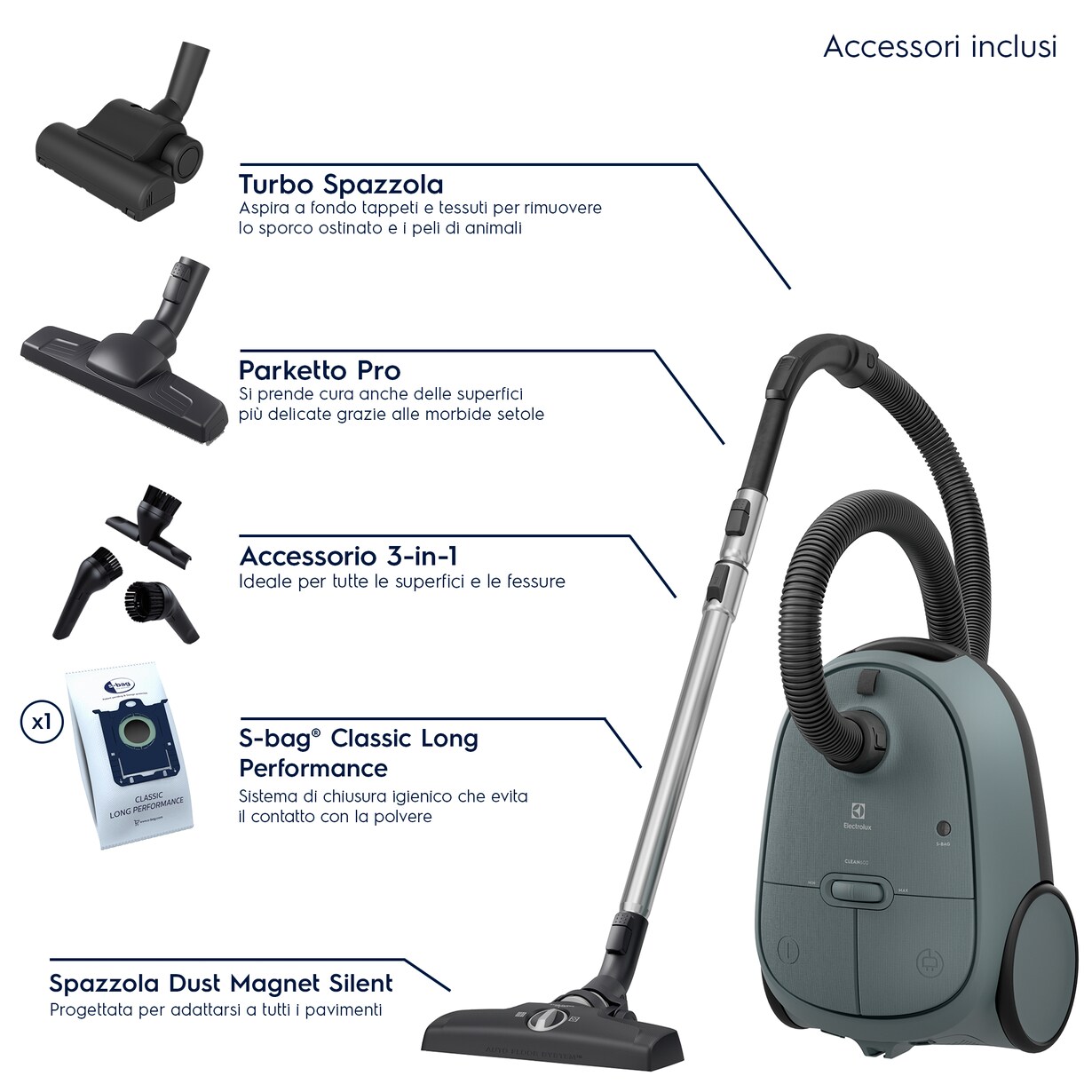 La brosse Dust Magnet Silent offre une puissance d’aspiration élevée pour les poussières fines afin d’éliminer jusqu’à 100 % de la poussière dans les crevasses*