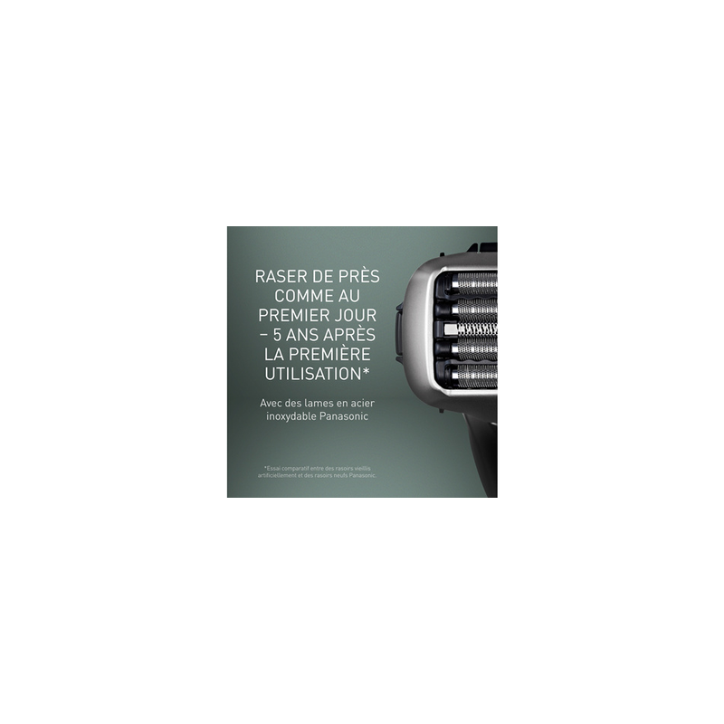 *Comparaison du nombre et de la longueur des poils entre des rasoirs neufs et des rasoirs vieillis artificiellement, effectuée dans les instituts ipi en Allemagne, avril 2023 ; tests en laboratoire interne avec des lames de rasoir usées artificiellement, au Japon, mai 2023. [Modèle de test : Panasonic ES-LV67 uniquement – matériau et structure des lames identiques].
