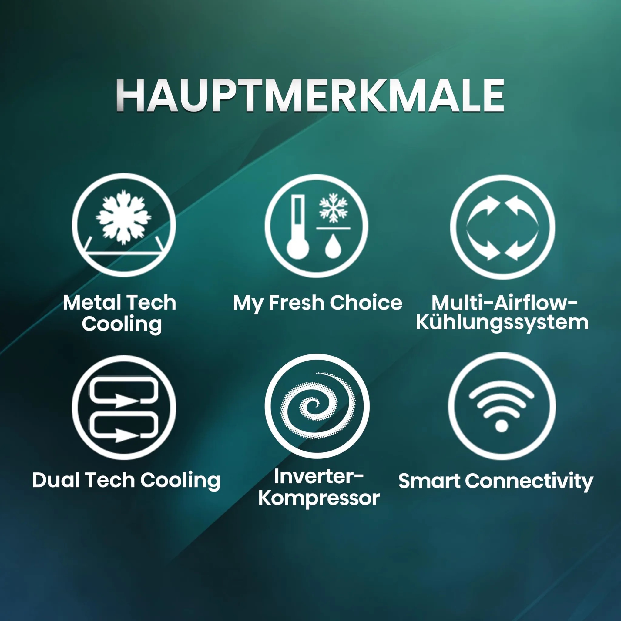 Les compresseurs Inverter modernes mesurent les conditions à l’intérieur de votre réfrigérateur et ajustent la puissance de refroidissement en conséquence, afin de garantir une température stable, d’économiser de l’énergie et de fonctionner plus silencieusement, tout en prolongeant la durée de vie de votre appareil.