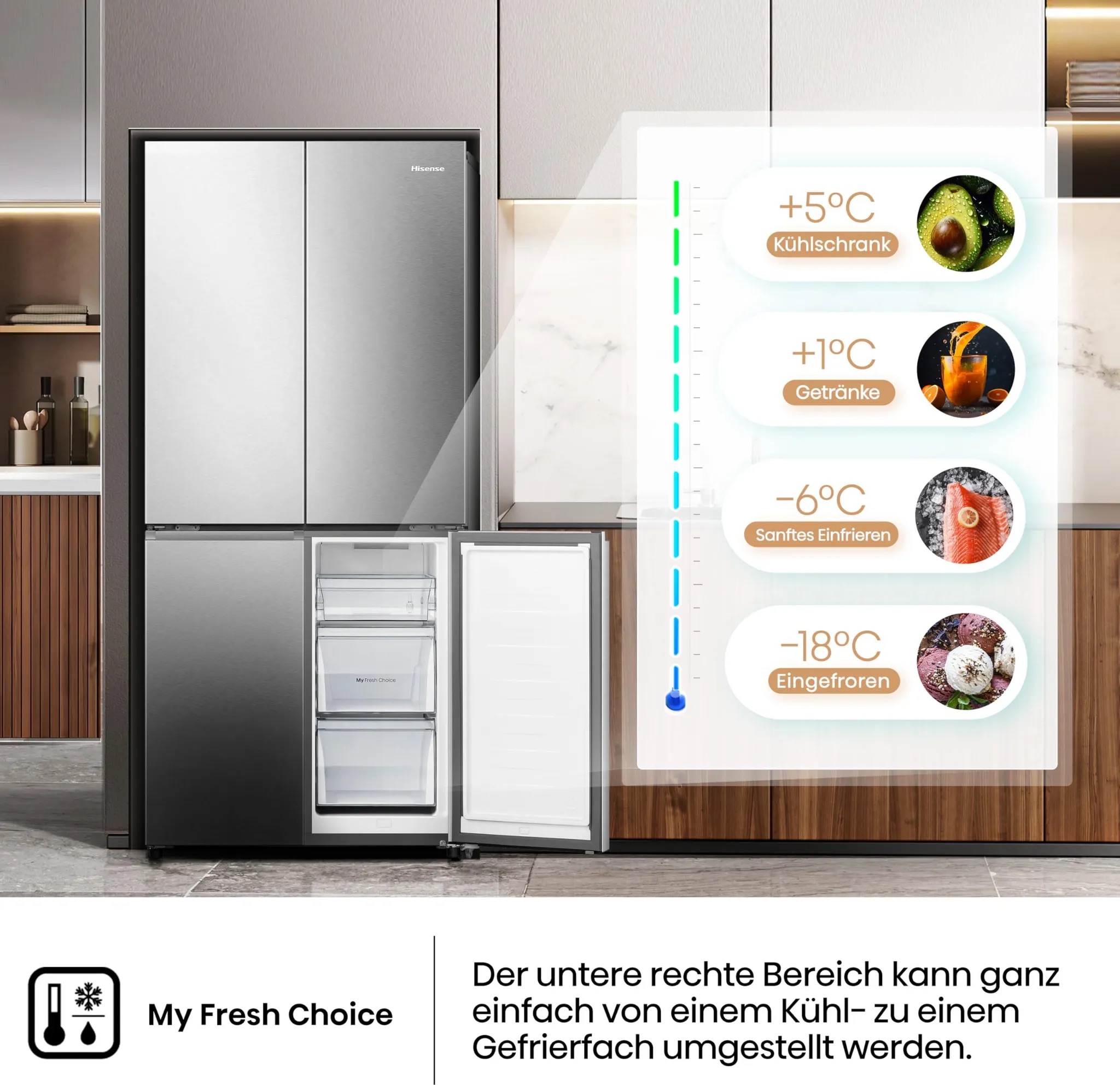 Doté de la porte à croisillons emblématique, ce réfrigérateur Hisense propose trois zones de température différentes : réfrigérateur, congélateur et zone convertible. De quoi préserver vos aliments le plus longtemps possible.