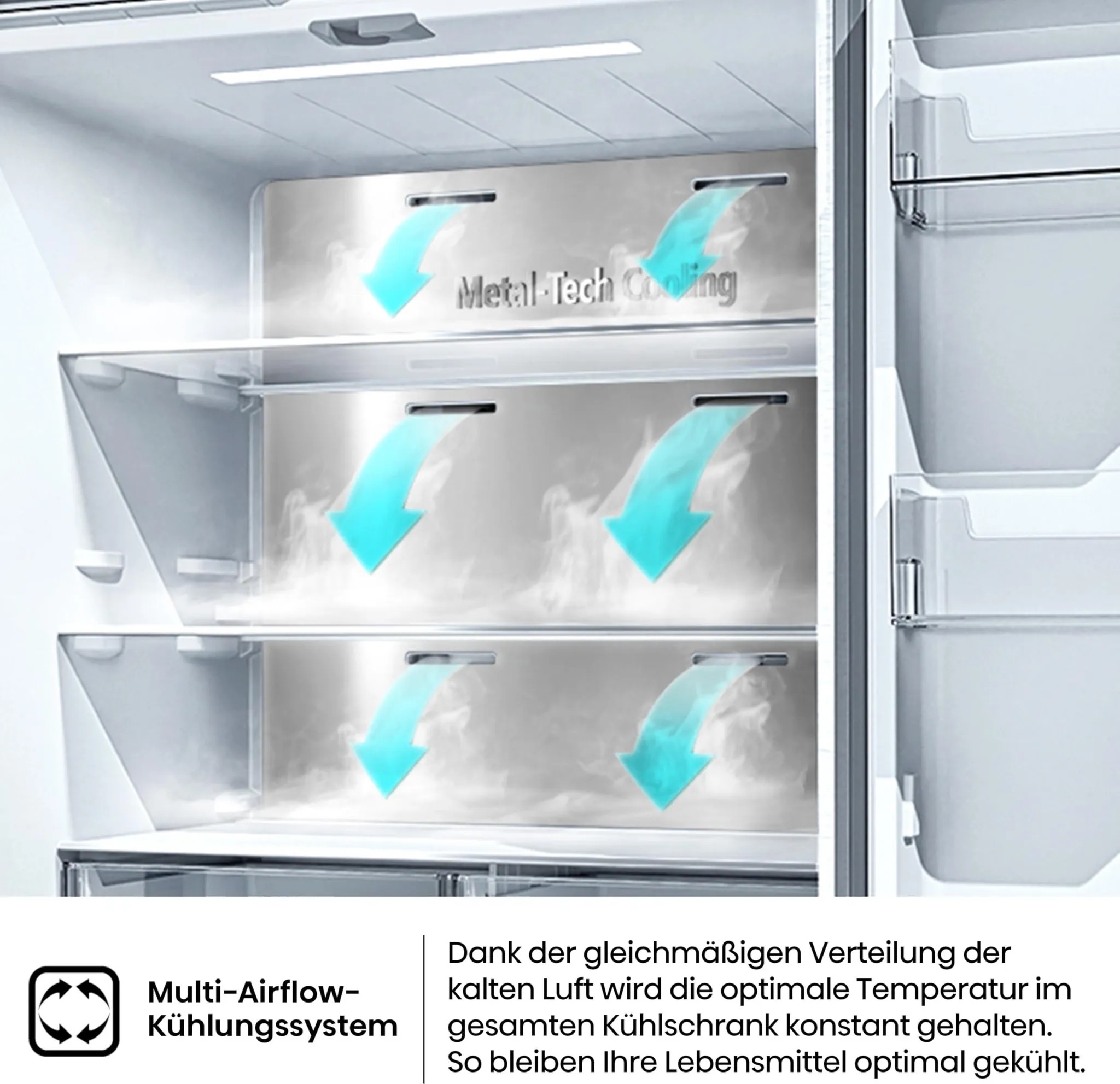 Grâce à la répartition homogène de l’air froid assurée par le système intelligent Multi Air Flow, la température optimale est maintenue de façon constante dans tout votre réfrigérateur-congélateur. Vos aliments restent ainsi parfaitement frais, quel que soit leur emplacement.