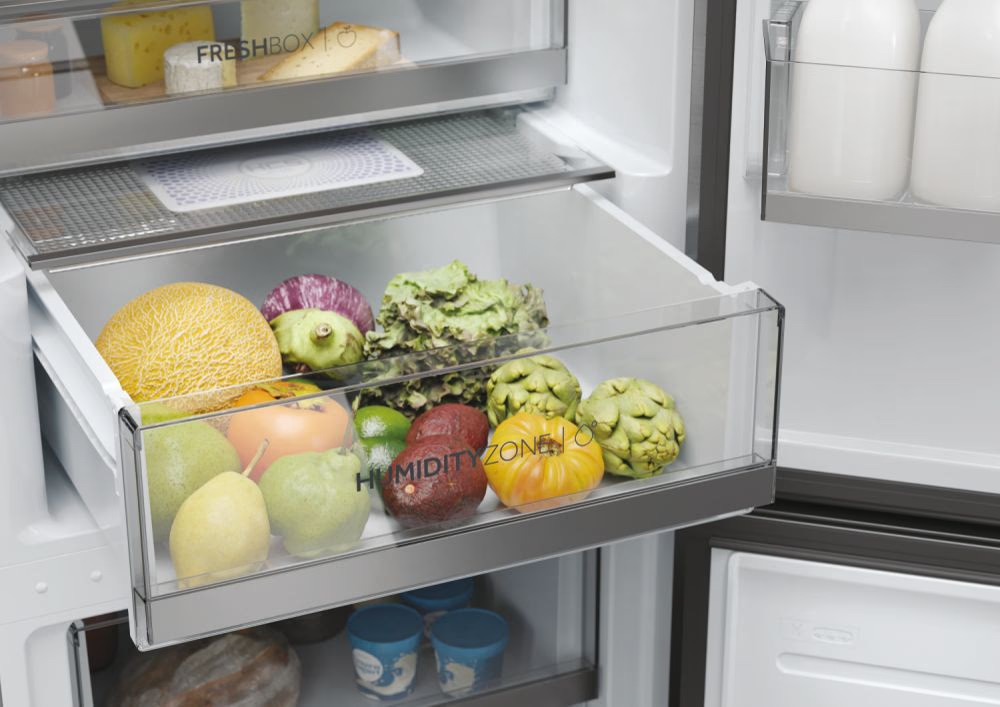 Le tiroir Humidity Zone préserve la fraîcheur de vos fruits et légumes deux fois plus longtemps* grâce au maintien automatique d’un taux d’humidité allant jusqu’à 90 % grâce à la technologie de filtre HCS (Humidity Control System), une membrane en fibres végétales. Ainsi, la condensation est évitée à l’intérieur du tiroir, permettant ainsi à l’air de circuler et de préserver durablement tous les nutriments des aliments. *Certifié VDE n° ID.40046454