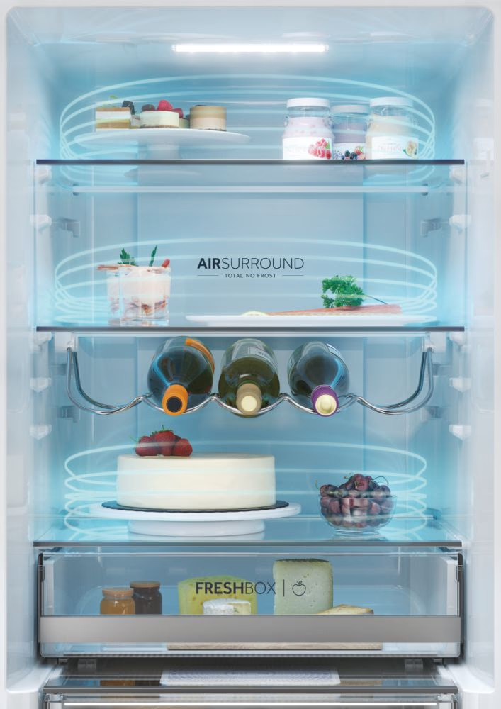 Avec la technologie Air Surround, l’air circule dans le réfrigérateur de façon homogène. Ce système permet de préserver la fraicheur et le goût des aliments. De plus, étant donné que le givre ne se forme pas , l’entretien de votre réfrigérateur-congélateur n’en sera que plus simple