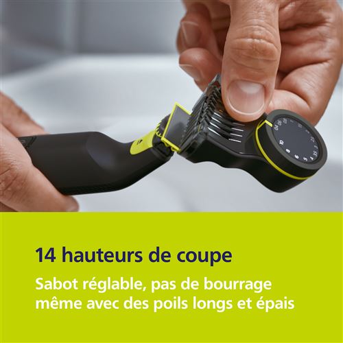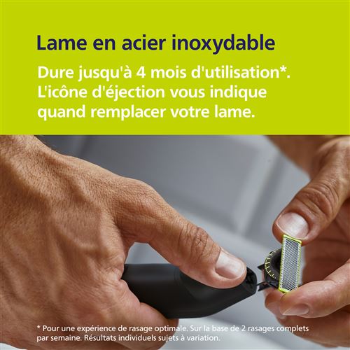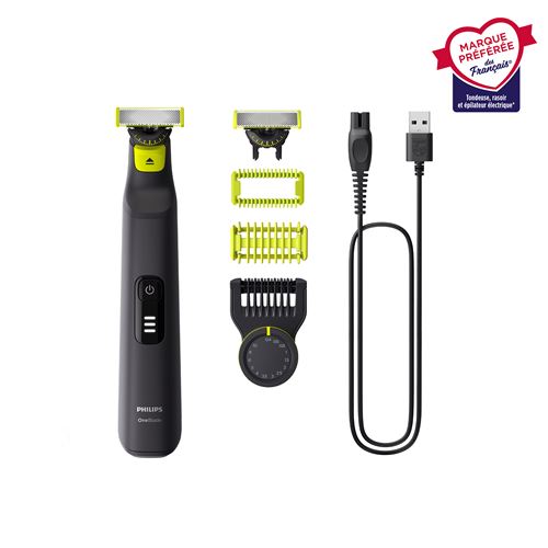 Le Philips OneBlade Pro Visage + Corps taille, stylise et rase votre corps et votre barbe, même longue. Il comprend une lame pour le visage et une lame avec un système de protection pour zones sensibles. Inutile de multiplier les appareils. Le OneBlade répond à tous vos besoins.